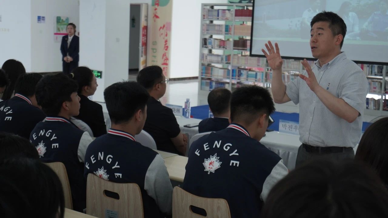 朴珍雨院长特别提到,我院郭思源同学在韩国航空大学学习期间表现尤为突出,其严谨的治学态度和饱满的学习热情获得了授课教授们的一致好评。朴院长表示,热切期待我院2023级即将赴韩学习的同学们,相信他们定能延续优秀传统,展现枫叶学子的风采。