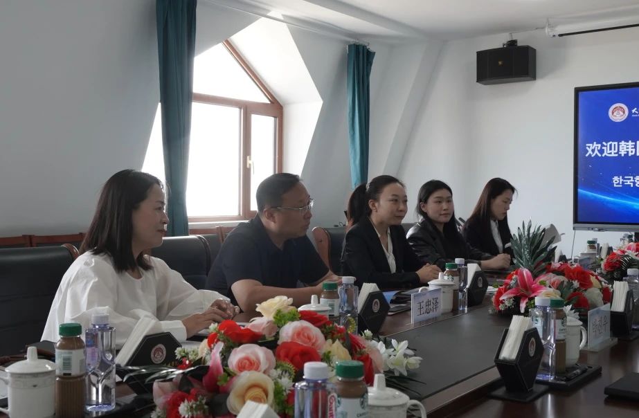 韩方介绍了国际交流学院的四大专业(服务管理、航空管理等),其中服务管理专业采用韩语授课,其余专业为英文授课。