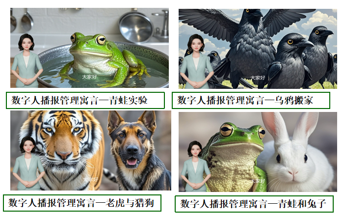 根据每次课程内容的要求,利用豆包AI完成管理寓言文字内容的设计,后利用腾讯智影中数字人的功能,设计完成数字人管理寓言播报,激发学生学习兴趣,实现AI启智。