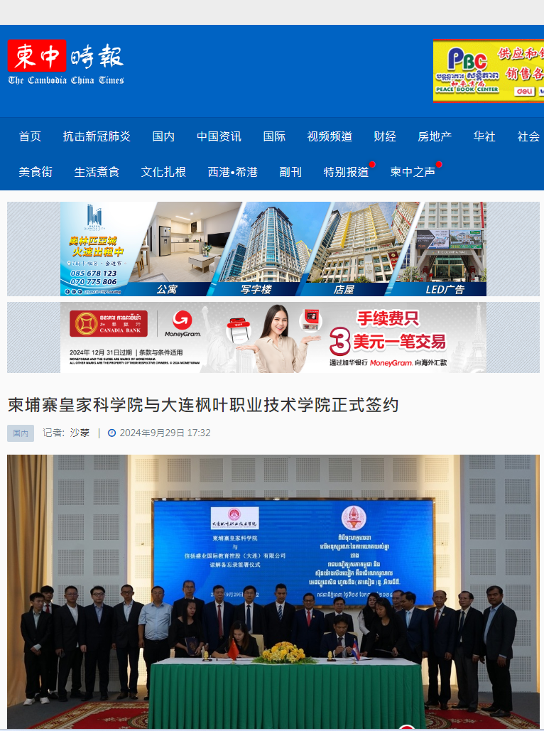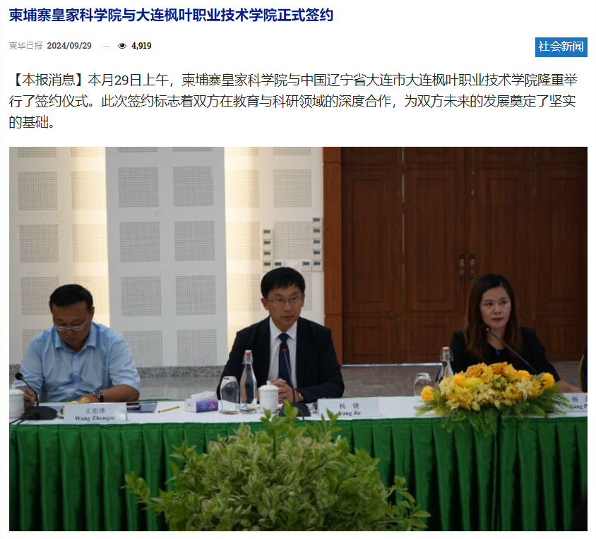 大连枫叶职业技术学院与柬埔寨皇家科学院缔结教育合作新篇章