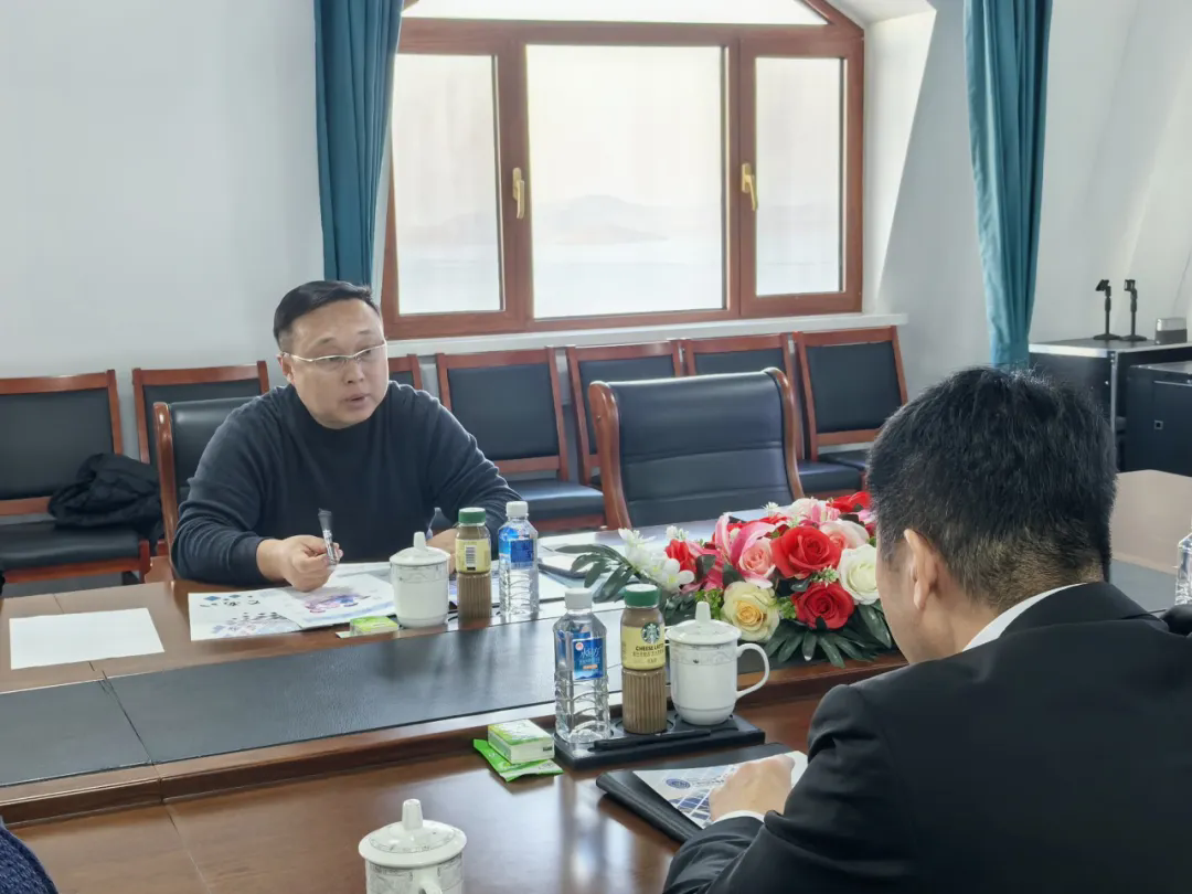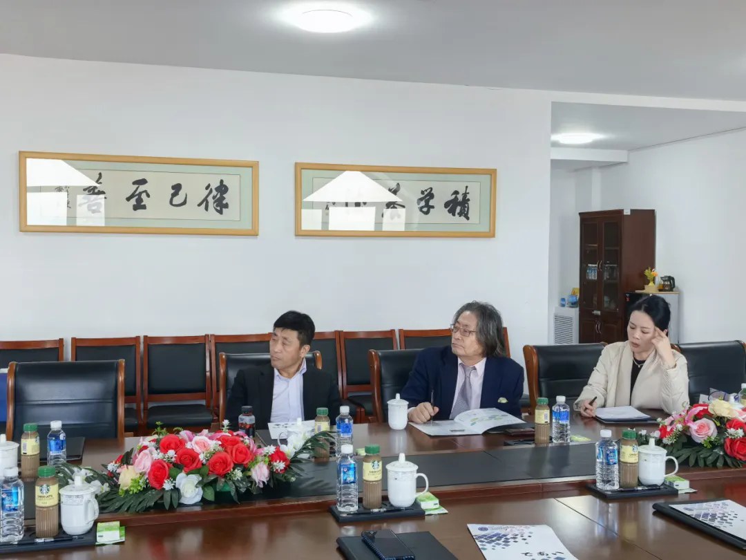 参观结束后,双方在大黑石校区4号教学楼七楼会议室举行了交流座谈会。王忠泽院长向吉井胜行先生介绍了目前学院两个校区的建设与发展情况,分享了学院在国际交流合作方面的现有成果,着重强调了学院 “走出去、引进来” 的国际化办学特色,同时介绍了学院下一步的发展方向。
