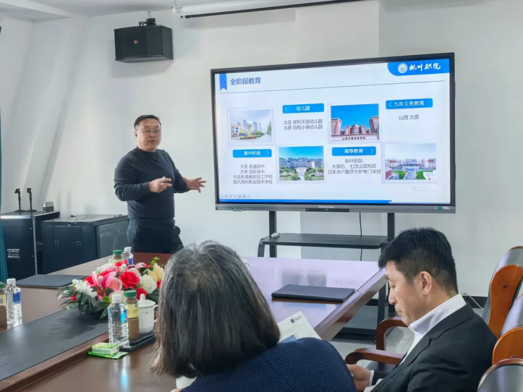 2025年1月20日,日本千叶县EG会集团干事长(秘书长)吉井胜行先生一行莅临我院访问交流。信扬盛业国际教育控股(大连)有限公司董事、大连枫叶职业技术学院工会主席、继续教育与国际合作交流学院院长王忠泽,护理产业学院院长王珊,大连信业达职业培训学校日本语教研主任韩强以及校办公室主任庞成花热情接待了来访嘉宾 。