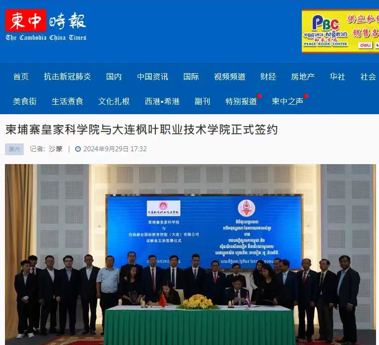 2024年9月29日,大连枫叶职业技术学院与柬埔寨皇家科学院签约共建“柬埔寨皇家科学院大连枫叶职业技术学院”